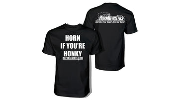 Show your support with a HornBlasters "Horn If You're Honky!" t-shirt! Available in Black, Red, or Blue.